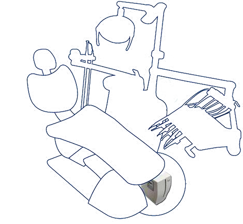 - Vienas kompaktiškas įrenginys – užima mažai vietos, nereikia atskirų prietaisų kiekvienam odontologiniam įrenginiui atskirai.