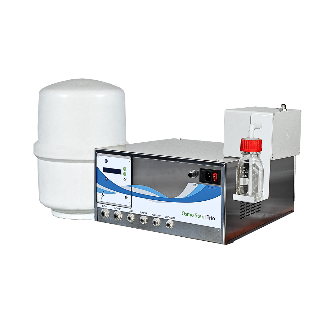 - Osmo Steryl įrenginys vandenį į odontologinius įrenginius tiekia automatiškai, be papildomo operatoriaus įsikišimo.