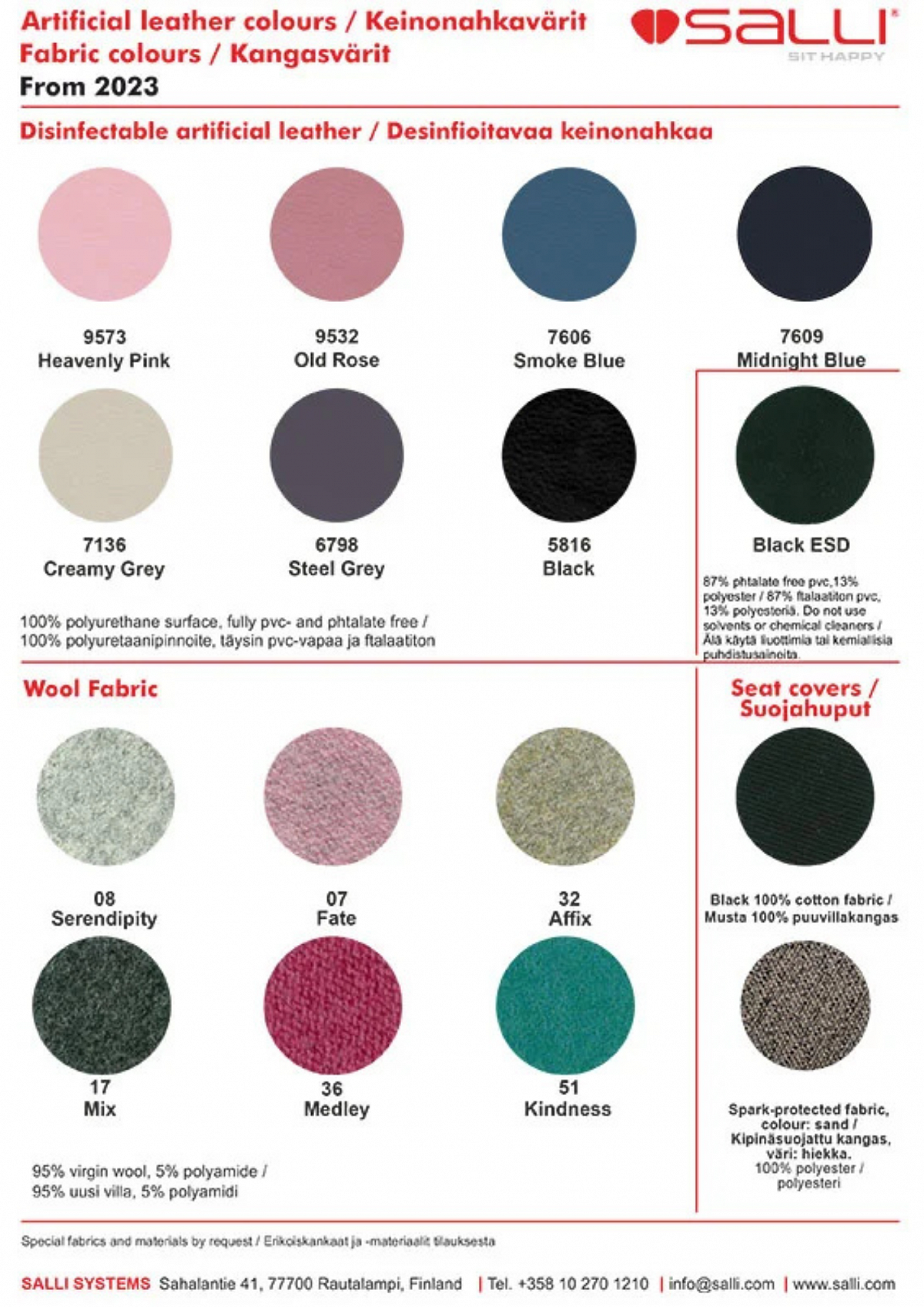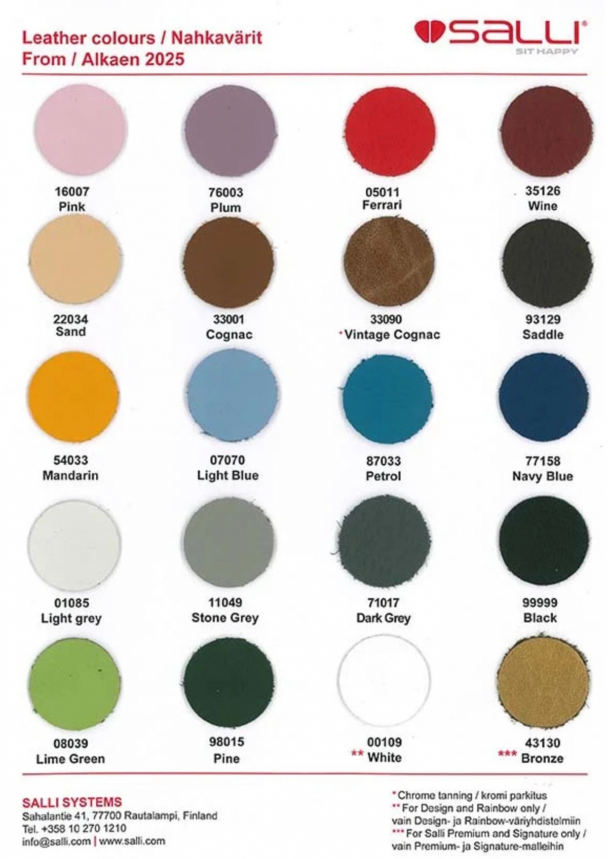 - Pasirinkimas iš 20 natūralios odos, 8 audinio ir 8 dirbtinės odos spalvų (žr. nuotraukose)