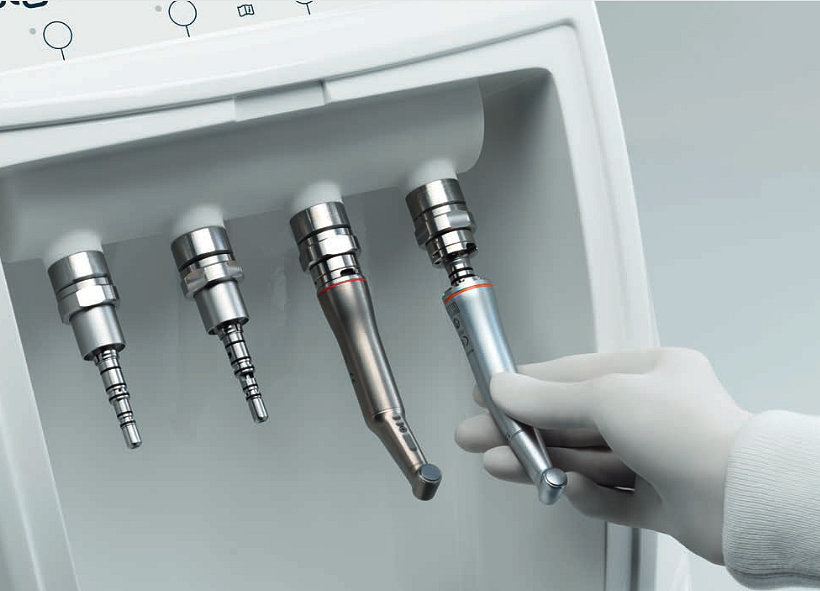 - Turbininių antgalių adapteriai, tokie kaip Cefla, Kavo® (MULTIflex®), Sirona®, W&H® (Roto Quick), NSK (PTL-CL-LED), Bien-Air® (Unifix®).