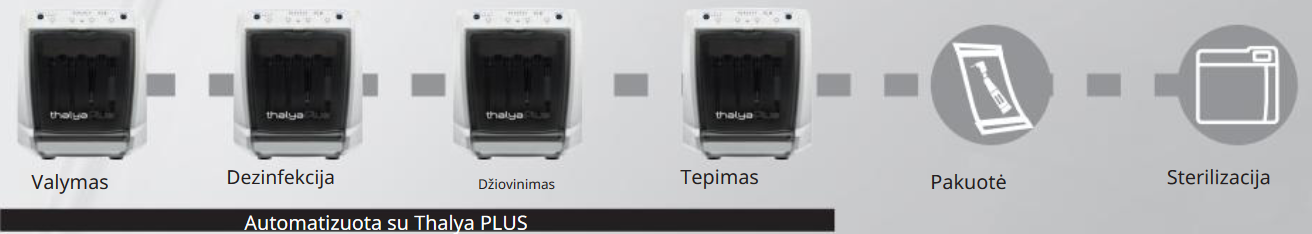 Thalya Plus automatizuoja instrumentų priežiūrą ir tokiu būdu supaprastina kasdienį odontologo darbą. Dėl pilno Thalya Plus 6 etapų odontologinių instrumentų priežiūros ciklo odontologai gali pamiršti rankinį valymą ir tepimą, nes prietaisas automatiškai atlieka visas būtinas procedūras. Tai ne tik sutaupo laiko, bet ir užtikrina, kad kiekvienas instrumentas bus tinkamai paruoštas darbaui. Operatyvaus Thalya Plus prietaiso dėka klinikoje ženkliai sumažėja instrumentų priežiūros krūvis, o odontologia gali skirti daugiau laiko pacientams.